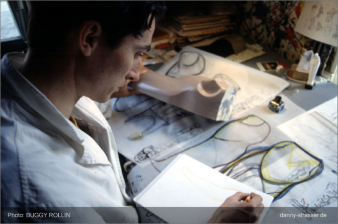 Jean Yves Blondeau 1997 beim Design einer seiner ersten Buggy Rollin Anzüge |
