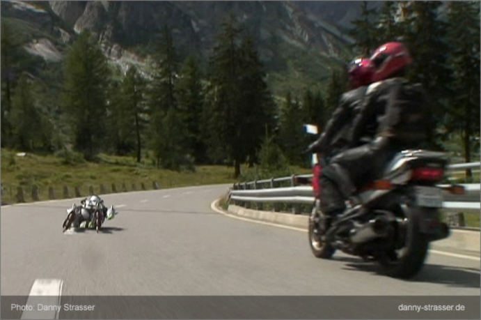 Even motorcycles are not safe from the Rollerman! |