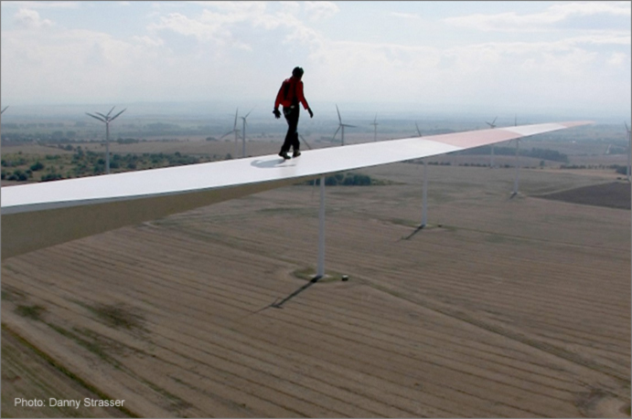 Nervenkitzel pur! Jojo Rose beim Catwalk in 96 Meter Höhe: "Da kommt man sich vor wie die Piraten früher, die auf dem Schiff raus gelaufen sind. Nur da schwammen Haie, ich hab einen Fallschirm."