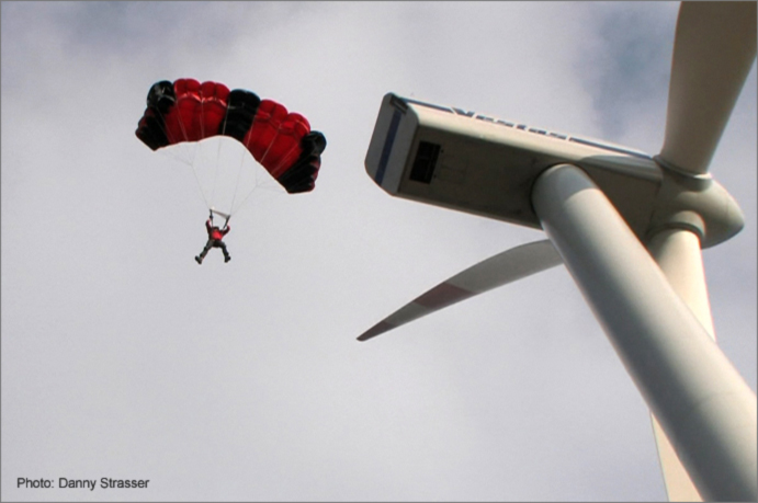 Bei wenig Wind dürfen Jojo und seine Freunde das 96 Meter hohe Windrad in einem Windpark bei Magdeburg abschalten.