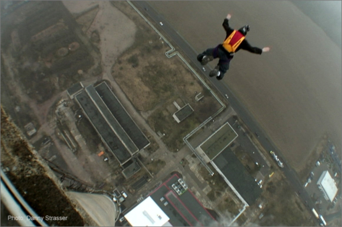 Johnny Utah springt vom Schornstein Ludwigsfelde in den Abgrund