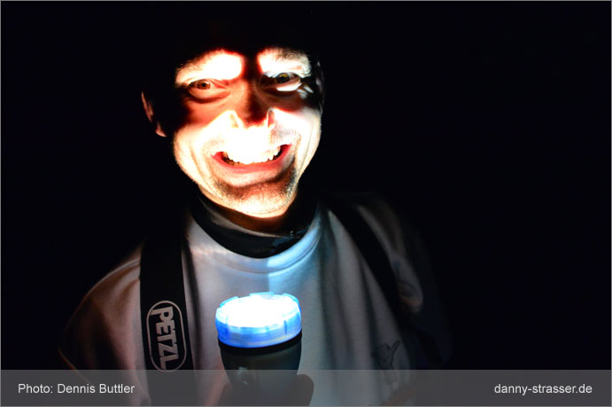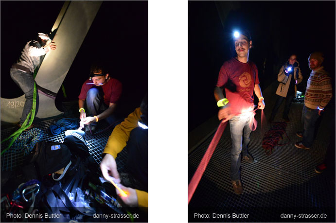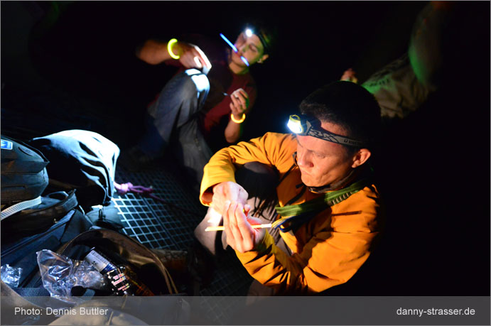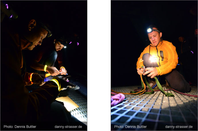 The end of the rope gets marked with a snap lightstick. |