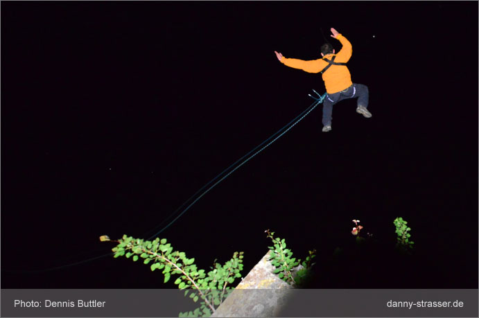 Mit einem mächtigen Satz katapultiert sich Tobi ins Nichts! |