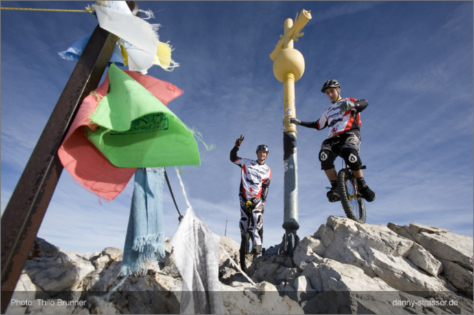 Mit dem Einrad auf Deutschlands höchstem Berg, der Zugspitze (2964 m)