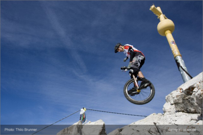 Andreas "Dresi" Hemmeter ist Einrad-Trial-Biker: Mit einem Sprung in 2964 Meter Höhe versetzte er die anwesenden Touristen in Staunen.