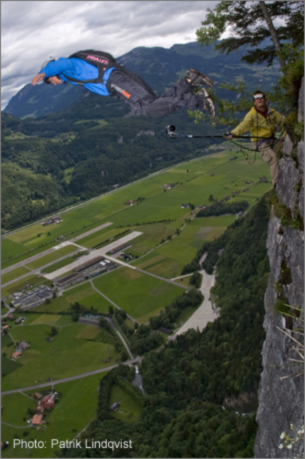 Videodreh in 700 Meter Höhe: Matt Gerdes beim B.A.S.E.jumping (Outdoorgames 2007)